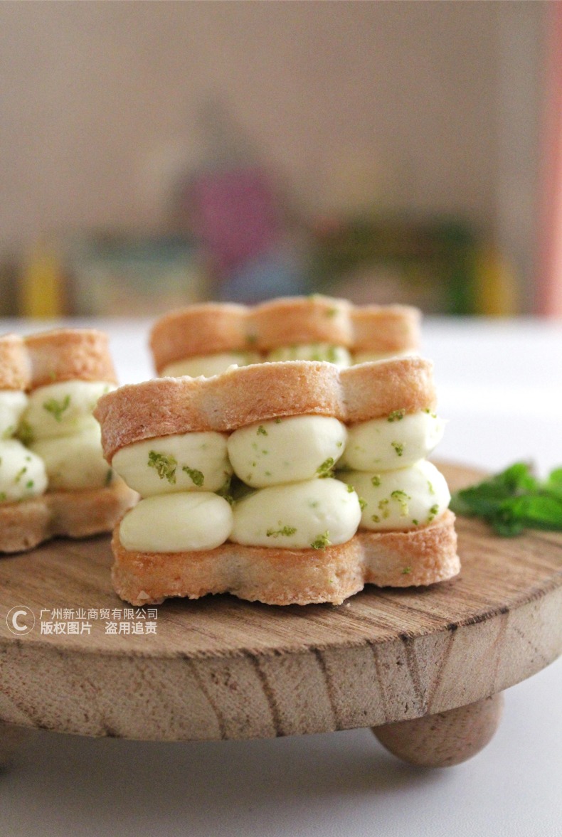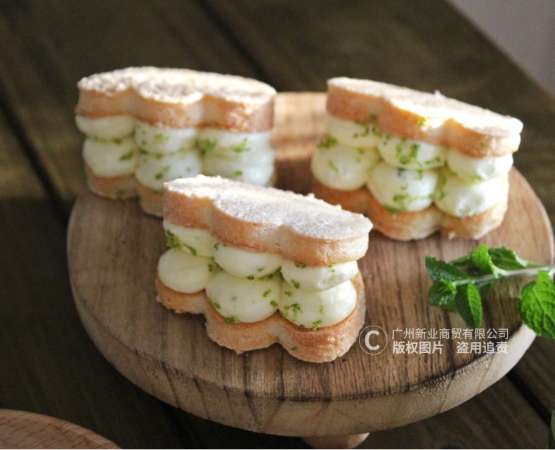 6、打发好的奶油装入裱花袋,挤到达克瓦兹饼干片上即可。